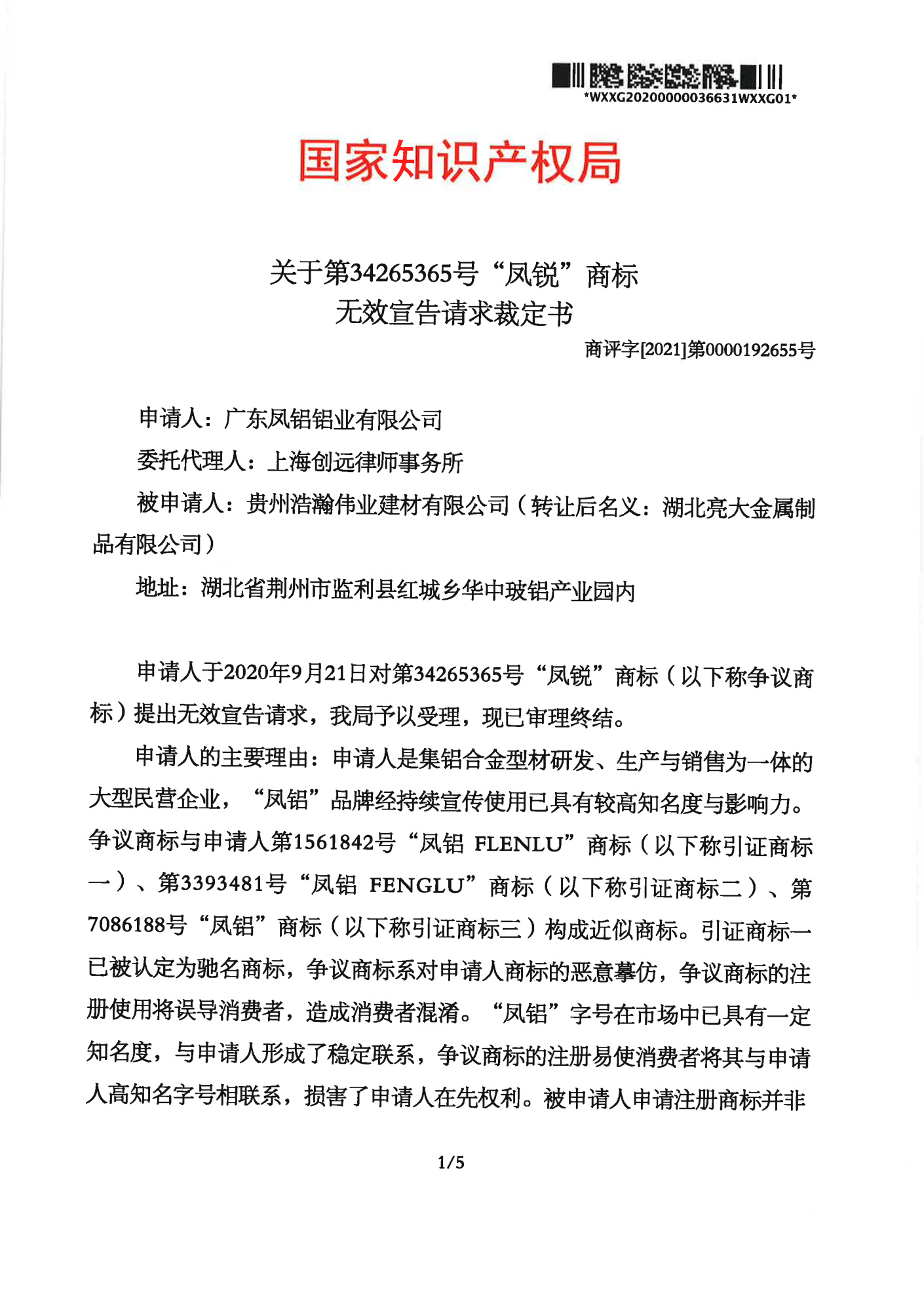 抚顺辉知队 | 国家知识产权局:“凤锐”商标无效